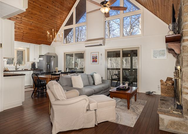 combination tub/shower, king, shower, toilet, tub, twin/ single, autumn foliage, festivals, forests, playground, pond, recreation center, restaurants, theme parks, waterfalls, winery tours, zoo, Dining, Books, DVD Player, Game Room, Pool Table, Television, Toys, Video Games, Books for Kids, Smart TV, Air Conditioning, Clothes Dryer, Fireplace, Hair Dryer, Heating, Internet, Iron & Board, Linens Provided, Living Room, Parking, Towels Provided, Washing Machine, Desk, Wifi, Free Wifi, Wifi Speed 250+ Mbps, Coffee Maker, Dishes & Utensils, Dishwasher, Ice Maker, Kitchen, Microwave, Oven, Refrigerator, Stove, Toaster, Dining Table, Dishes & Utensils for Kids, antiquing, bird watching, eco tourism, horseback riding, horseshoes, outlet shopping, paddle boating, photography, scenic drives, sight seeing, walking, Lake View, Lakefront, Resort, Rural, Deck / Patio, Outdoor Grill, Communal Pool, basketball court, cycling, equestrian events, fishing, fly fishing, freshwater fishing, golf, hiking, ice skating, mountain biking, mountain climbing, mountaineering, rafting, skiing, swimming, tennis, water tubing, whitewater rafting, children welcome, non smoking only, pets considered, flexible, necessary, Dining Area, Adventure, Away From It All, Family, Sports & Activities, Tourist Attractions, Outdoor lighting, Deadbolt lock on entryway, Smoke detectors, Carbon monoxide detector, Fire extinguisher, First aid kit, Emergency phone number: Medical, Emergency phone number: Police, Emergency phone number: Fire, Enhanced cleaning practices, Clean with disinfectant, No-contact check-in and check-out, High touch surfaces cleaned with disinfectant, Towels and bedding washed in water that's at least 60sC/140sF